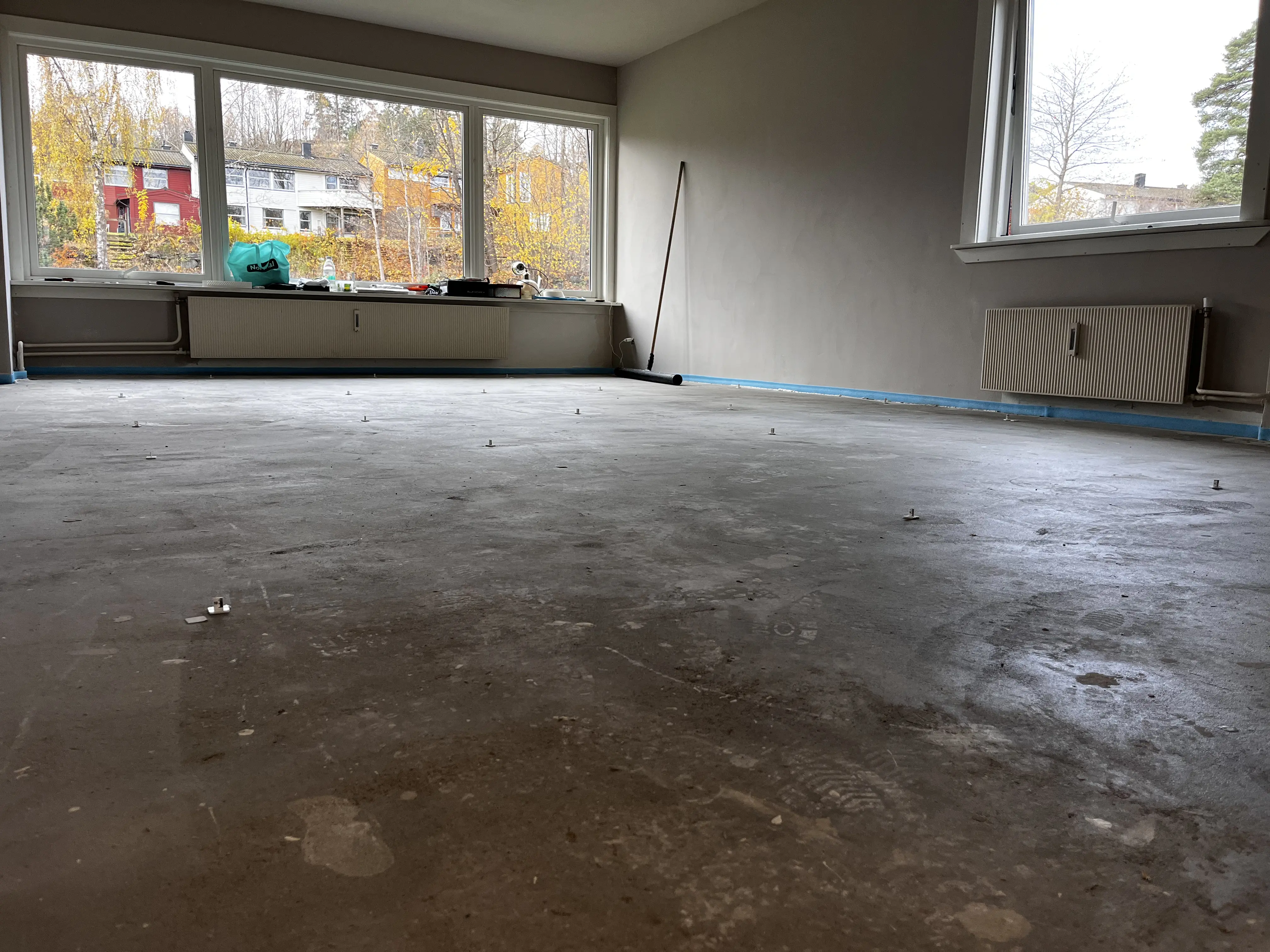 Ryddig leveranse – gulvet klart for videre arbeid og nytt belegg.